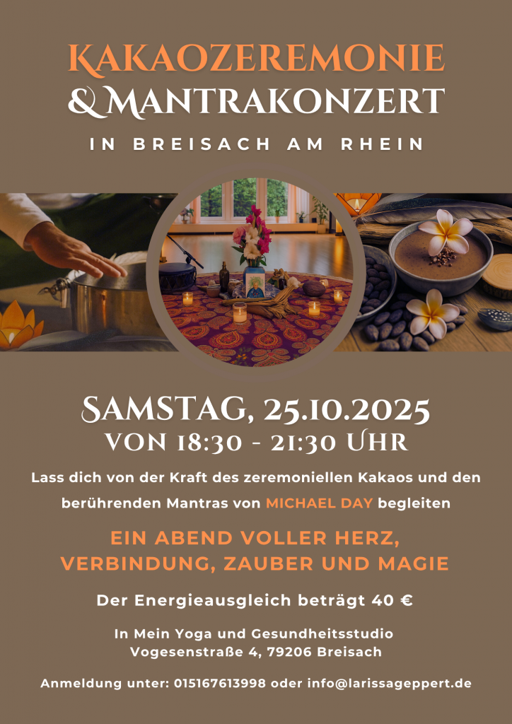 Ich lade dich von Herzen zu einem besonderen Abend ein: Am Samstag, 25.10.2025 treffen wir uns in Breisach zur Kakaozeremonie & Mantrakonzert.